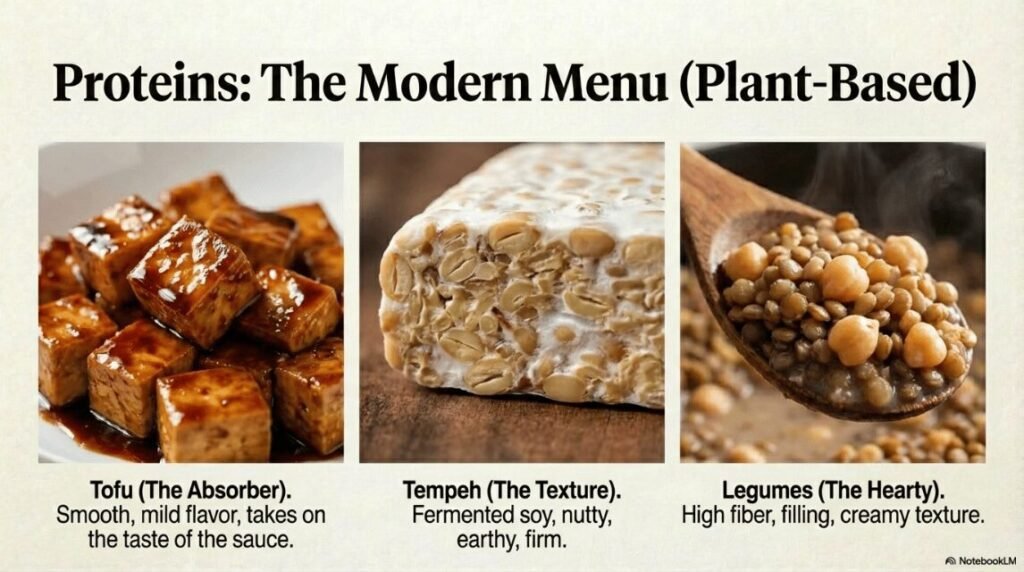 Protein is the main ingredient of most main courses. It’s usually meat, fish, chicken, or plant-based options.