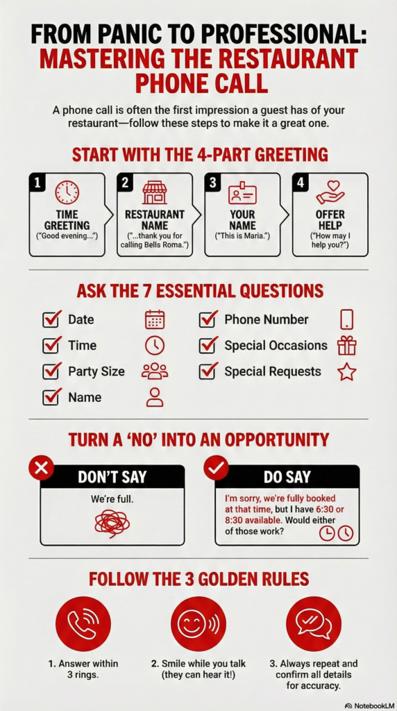 This guide teaches you everything you need to handle restaurant phone calls and reservations like a professional.