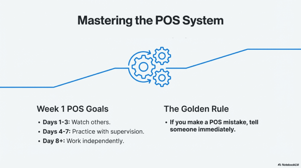 After that terrible day five, she went home and re-read her notes. She made a list of what she needed to learn. She practiced menu descriptions in front of a mirror. She arrived 20 minutes early the next shift and asked her trainer to show her the POS split-check function again.